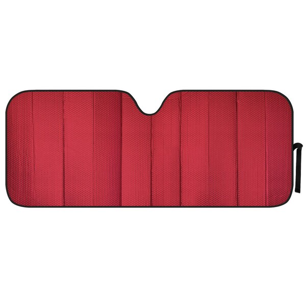 Windshield Sun Shade - Folding Accordion Style. Aluminum Reflective Red/Silver Reverse. Dimensions 66""x27"" Fits most cars. Blocks Damaging UV Rays - Protects your interior form sun damage. Insulated to keep your car cool on hot sunny days.