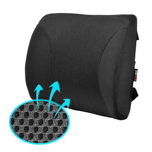 Honeycomb Grid Design. Supports Posture and Alleviates Lower Back Pain, Stress & Aches. Breathable, Sweat-Free Mesh. Car Seat Lumbar Support for Orthopedic Care. Extra Padding for Comfort.