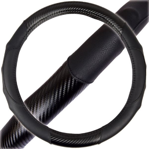 Motor Trend Matt Wheel Cover. Gorgeous Carbon Fiber Accents with Super-Soft Ergonomically Designed Synthetic Leather Grips. GripDrive Comfort Grip Provides Protection for Your Hands from Both Hot & Cold Weather. Standard Size (Steering Wheel Diameters 14.5"" to 15.5""), Easy Slip on Installation. Synthetic Leather Material - Odorless & Non-Stick - Made from the best feeling, toughest synthetic leather material.