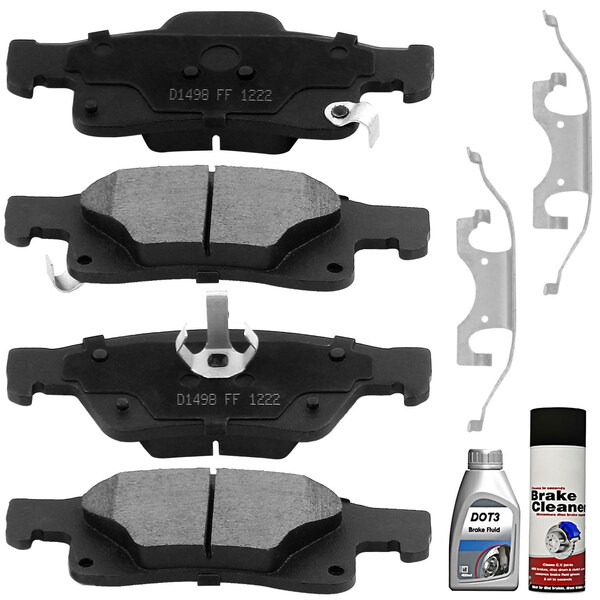 MotorbyMotor Rear Ceramic Brake Pads w/Hardware Kit D1498(4Pack) (Discontinued)