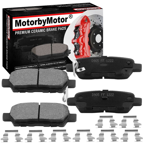 MotorbyMotor Rear Ceramic Brake Pads w/Hardware Kit D905(4Pack) (Discontinued)