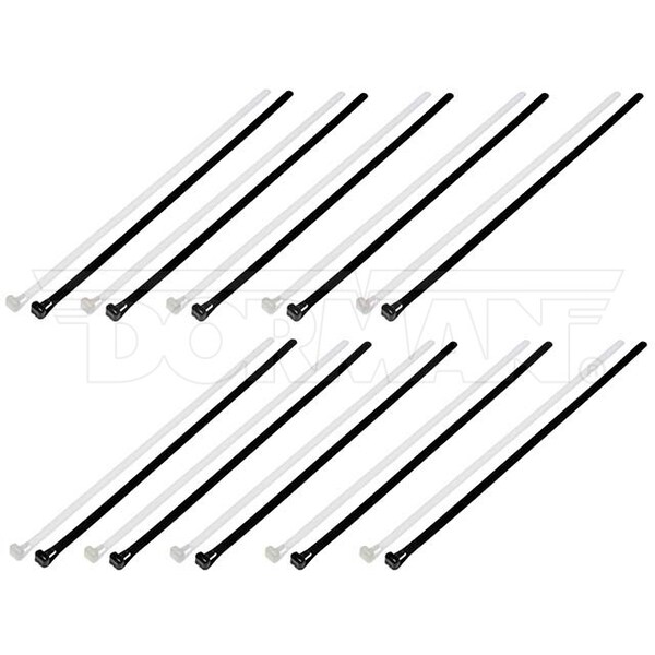 Cable Tie, 12 in L, Black, White, Nylon, 50 lb Strength