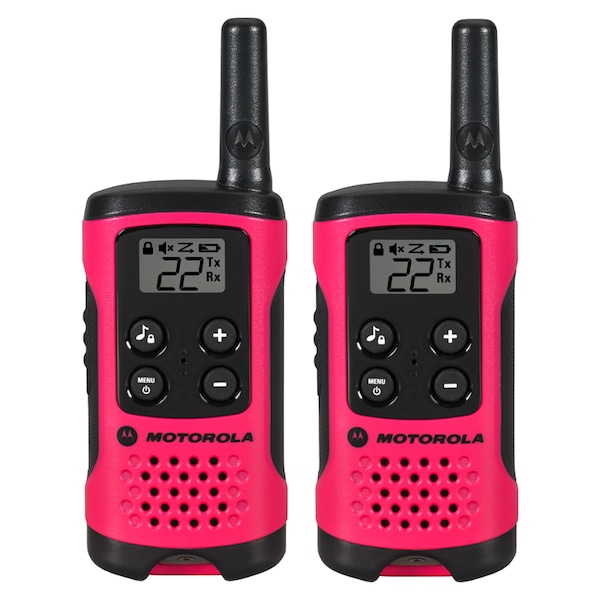 Keeping the family together. Simple, compact and easy-to-use by the entire family, the T107 is the perfect way to stay in touch when out and about, whether at the playground, hiking in the park or enjoying a picnic. This colorful two-way radio has a range of up to 16 miles and features 22 channels, providing you with just what you need to instantly reach your family and friends, and know they’re safe. How far can I expect my radios to communicate? The communication range quoted is calculated based on an unobstructed line of sight test under optimum conditions. Actual range will vary depending on terrain and conditions, and is often less than the maximum possible. Your actual range will be limited by several factors including, but not limited to: terrain, weather conditions, electromagnetic interference, and obstructions.