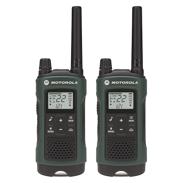 Handheld Two Way Radio, Band Type FRS, GMRS, Radio Transmission Analog, Digital Radio Technology Not Applicable, License Required Yes, Programming Requirements Pre-Programmed, Number of Channels 22, Output Power 2 W, Minimum Frequency 462 MHz, Maximum Frequency 467 MHz, Display Type Alphanumeric, Subscription Type Not Applicable, Radio Series Talkabout T400, Battery Life 10 to 26 hr, Number of Radios Included 2, Waterproof No, Repeater Capable No, Intrinsically Safe No