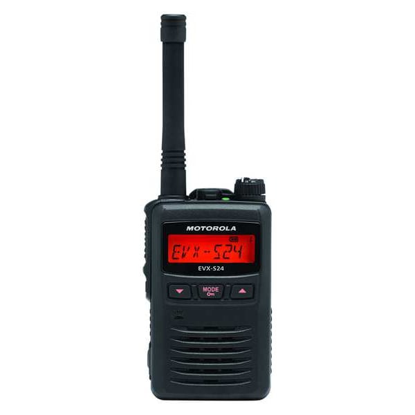 Handheld Two Way Radio, Band Type UHF, Radio Transmission Analog and Digital, Digital Radio Technology DMR, License Required Yes, Programming Requirements Dealer-Programmed, Number of Channels 256, Output Power 3 W, Minimum Frequency 403 MHz, Maximum Frequency 470 MHz, Display Type Alphanumeric, Subscription Type Not Applicable, Radio Series EVX-S24, Battery Life 11 hr Analog, 12 hr Digital, Number of Radios Included 1, Waterproof Yes, Repeater Capable Yes, Intrinsically Safe No