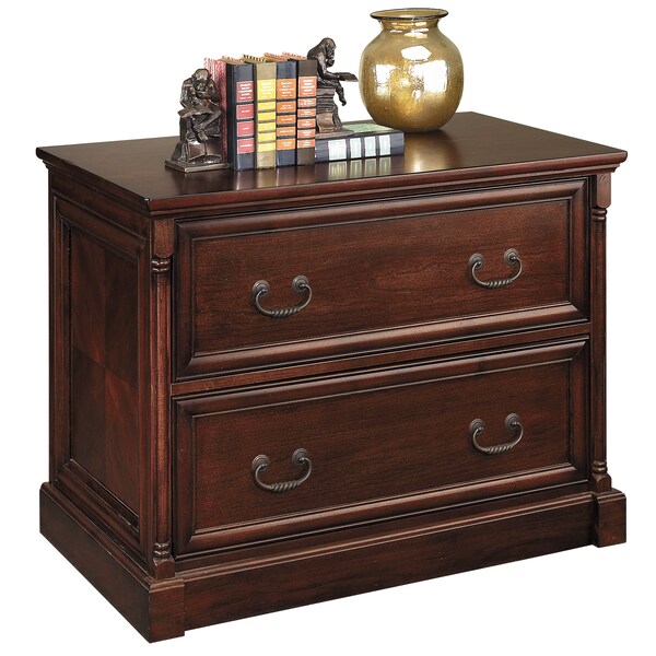 Inspired by the kathy ireland HomeTM Americana Style GuideTM, Mount View offers contemporary conveniences with traditional design elements for today's home and executive office. Holding true to traditional American beauty, this furniture collection boasts richly grained hardwood with cherry veneers and book matched panels. Incredible durability, style and adaptable configurations combine to form a timeless collection. The lateral file cabinet includes two letter/legal sized file drawers that lock for security.