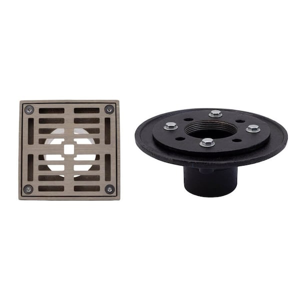 4" Square Complete Shower Drain - PVC in Champagne Bronze