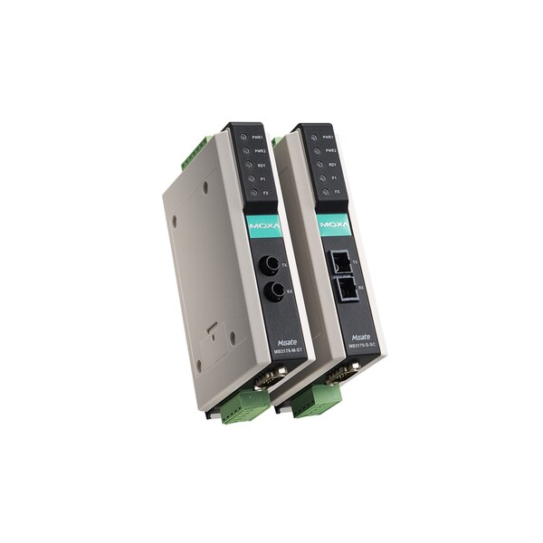 1-port advanced Modbus gateway with 1 100BaseF(X) multi-mode fiber port (ST connectors), -40 to 75°C operating temperature