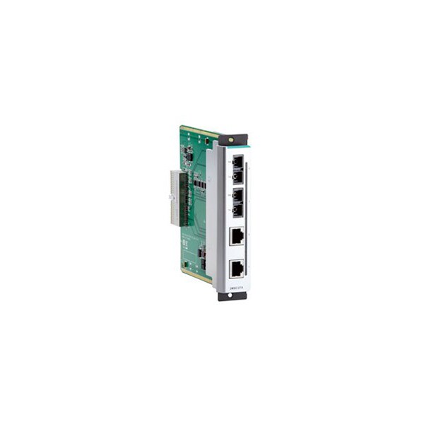 Fast Ethernet interface module with 2 10/100BaseT(X) ports, RJ45 connectors, and 2 100BaseFX multi-mode ports, SC connectors, -40 to 75°C operating?temperature