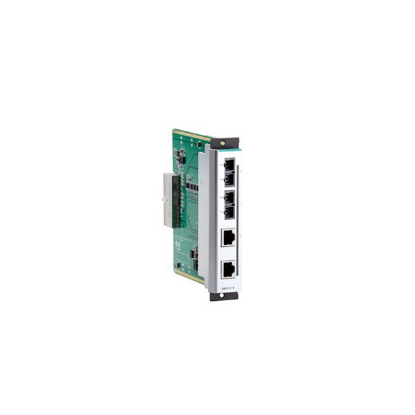 Fast Ethernet interface module with 2 10/100BaseT(X) ports, RJ45 connectors, and 2 100BaseFX single-mode ports, SC connectors, -40 to 75°C operating?temperature
