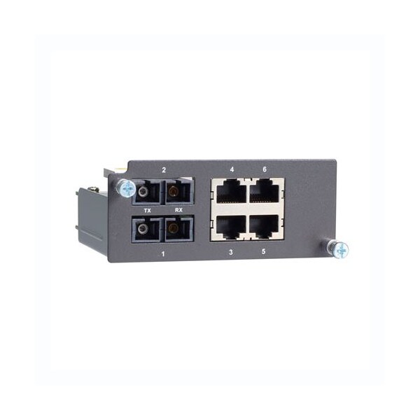 Fast Ethernet Module with 2 single-mode 100BaseFX ports with SC connectors and 4 10/100BaseT(X) ports with RJ45 connectors
