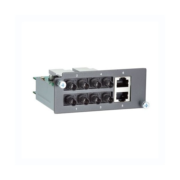 Fast Ethernet Module with 4 multi-mode 100BaseFX ports with ST connectors and 2 10/100BaseT(X) ports with RJ45 connectors