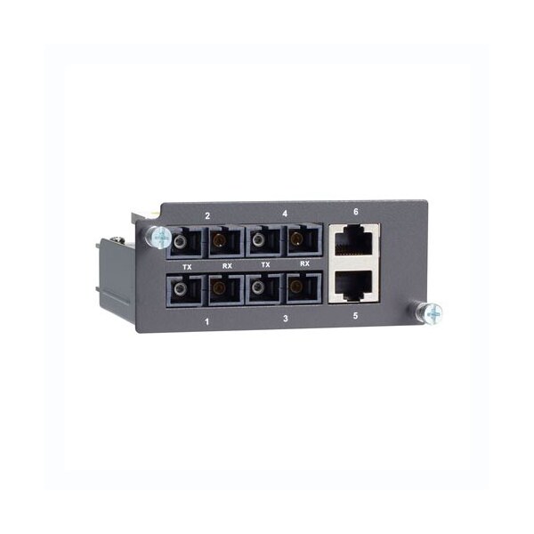 Fast Ethernet Module with 4 single-mode 100BaseFX ports with SC connectors and 2 10/100BaseT(X) ports with RJ45 connectors