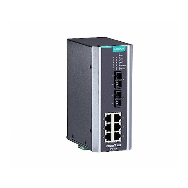 Moxa PT-508-SS-SC-48 - IEC 61850-3 managed Ethernet switch with 6 10/100BaseT(X) ports, and 2 100BaseFX single-mode ports with S