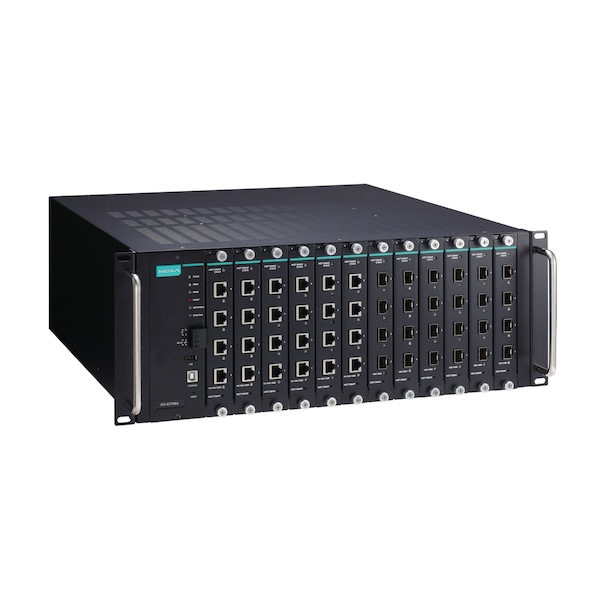 Layer 2 Full Gigabit managed Ethernet switch with 12 slots for 4-port 10/100/1000BaseT(X) module or 4-port 100/1000BaseSFP slot module, 2 isolated power supplies (85 to 264 VAC), -10 to 60°C operating temperature