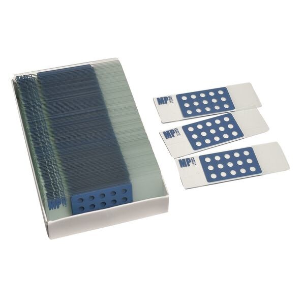 Multitest Slide, Product Type Multitest Slide, Material Glass, Overall Length 127 mm, Overall Width 76.2 mm, Number of Slides 100, Includes Not Applicable, Color Blue, Autoclavable No, Sterile/Non-Sterile Non-Sterile, Standards Not Applicable, Package Quantity 100