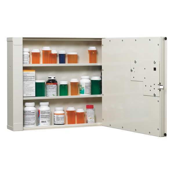 Medical Storage Cabinet, Color Beige, Net Weight 32 lb., Capacity 25 lb., Material Steel, Finish Powder Coated, Max. User Codes 499, Number of Shelves 3 Fixed, Number of Drawers 0, Lock Style Electronic, Number of Bolts 0, Outside Height 18 In., Outside Width 22 In., Outside Depth 4 In., Holds Medication, Supplies