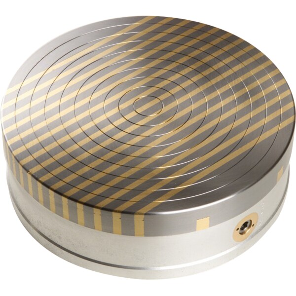 Due to its high holding force and watertight top plate, the MPI Double Ceramic Round Chuck is an indispensable tool during workpiece turning and circular grinding. The relatively small pole pitch and a low magnetic field make it suitable for thinner workpieces from 0.3 in or from 0.5 in depending on the chuck diameter and pole pitch. Holding force:140N/cm2 / 203lbs/in2, Min. workpiece size: 1.6×1.6×0.3in Regrinding limit: 0.2in, Pole pitch: T0.50.3+0.2in (steel/brass) or T0.70.5+0.2in (steel/brass) Poles: Parallel