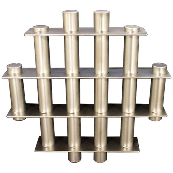 MPI’s Grate Magnets are are designed to remove medium and small-size ferrous tramp metal contaminants from dry, granular free-flowing product streams in gravity-fed vertical chutes, hoppers, housings, or bins. Grate Magnets are easy to install and clean. They offer efficient, economical magnetic protection of processing equipment, such as milling, extruding, and mixing, while improving product purity. The product stream flows through a row of 1” diameter magnetic tubes, located on 2” centers, allowing 1” of space between each tube. The tubes are held in place with a welded stainless-steel support frame. As tramp metal contaminants are captured, they move to the underside of the magnetic tubes, eliminating tramp metal “wash-off.” All tubes are fully welded for the highest durability, no crimped or mechanically sealed end plugs. Magnet Performance (Average) 12.5 lbs. on contact with 1⁄2” ball, 5.0 lbs. with a 1⁄4” ball and 10,000 gauss (peak) on the surface of the tube.