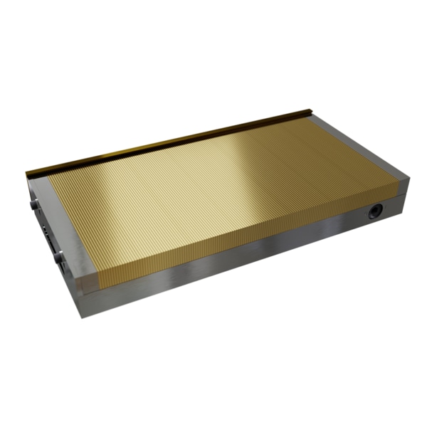 The MPI Rare Earth Surface Grinder Chuck offers exceptional holding force combined with high quality and favorable pricing. It is a simple, low maintenance clamping device primarily used as an accessory to grinders intended for precise surface grinding of very small, thin parts up to large workpieces, completely sealed waterproof allowing for electrical discharge machining. Featuring a holding force of 100N/cm2 / 145lbs/in2, regrind limit of .275" and Transverse poles. Minimum workpiece size: 0.2 x 0.2 x 0.04 in, Pole pitch: T0.08 0.06 + 0.02 in (steel/brass)