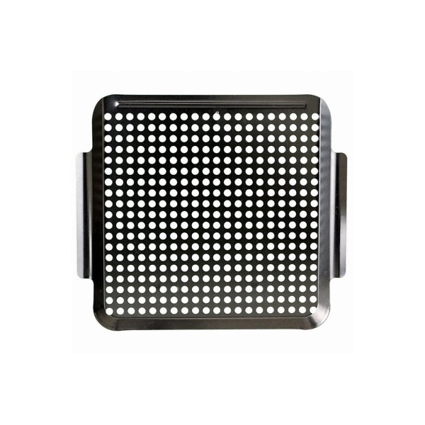 12 x 12 Non Stick Gourmet Topper With Handles 0.8mm. Keeps Small Items from Falling Through the Grate. Raised Edges for Convenient Spatula Use. Non-Stick for Easy Cleaning.
