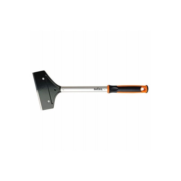 15.5 Long Handle Griddle Scraper keeps you away from the heat. 5.5 Sharpened Stainless Steel Blade Cleans Griddle Evenly Consistently and Thoroughly. Lightweight Aluminum Construction. Protective Cover On Blade - Silk screen Logo