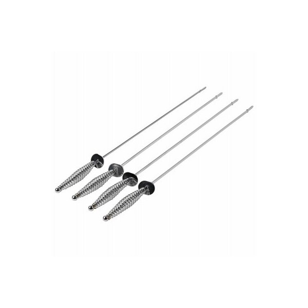 4PK 17 Chrome BBQ Skewers - With Stay Cool Touch Spiral Handles. Ideal for kabobs meats and marshmallows. Heavy duty chrome plated steel. Spiral Cool touch handle grip to protect hand from the heat.
