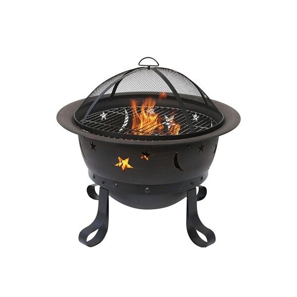 Bring the warmth and ambiance of a fireplace to your patio, deck or backyard with this Endless Summer deep stars and moon fire bowl. With its popular oil rubbed bronze finish and celestial design, this fire pit will compliment any style of decor and is easily portable. A deep bowl makes this fire pit perfect for burning larger fires and roasting marshmallows. Included is an easy to lift mesh spark guard and log grate. A is included. -29.3-inch diameter bowl -Deep bowl design for large, long-lasting fires -Wood burning for convenient heating -Spark guard included for safety -Oil rubbed bronze finish bowl; Bronze.