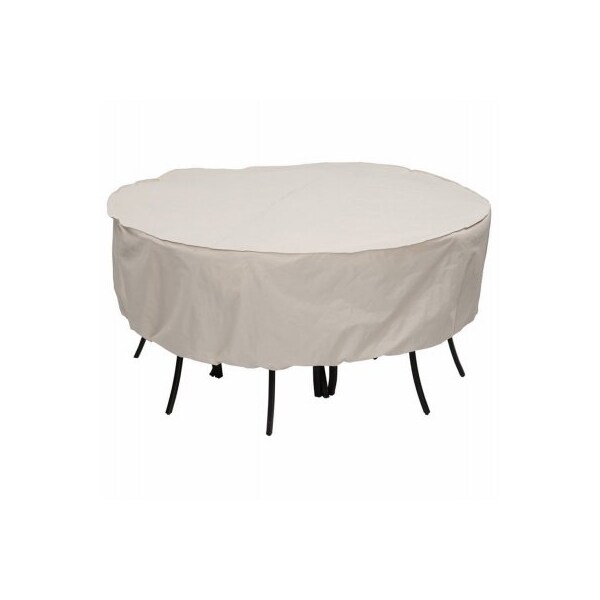30 in x 80 in Dia, 600 x 300D PVC, Elastic, Taupe, Round Table and Chair Dining Set Cover