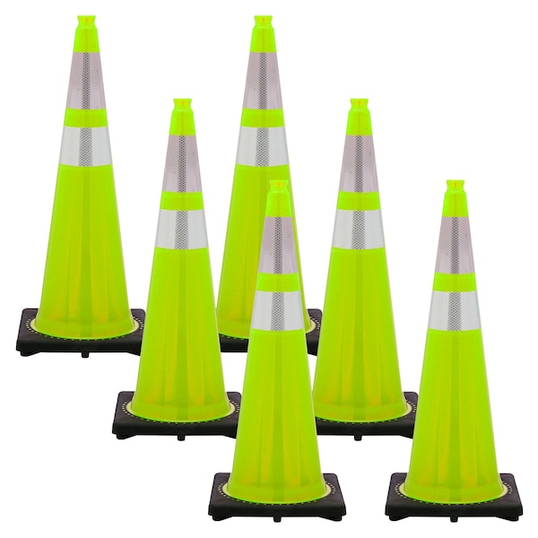 36" Safety Green Reflective Traffic Cone (6-Pack)