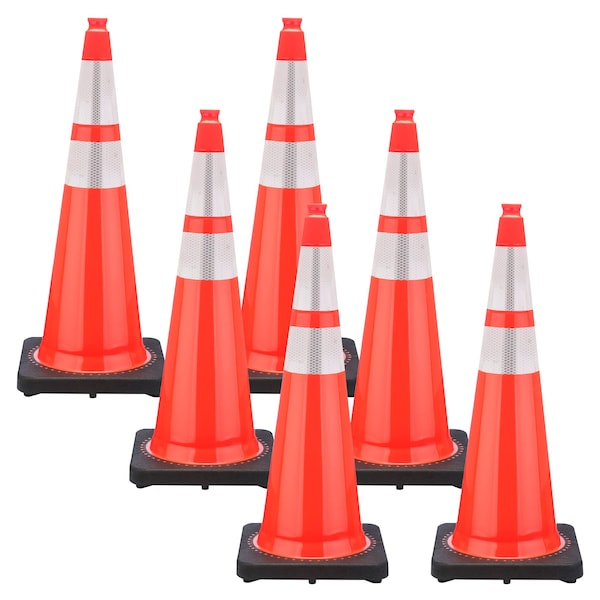 36" Traffic Orange Reflective Traffic Cone (6-Pack)