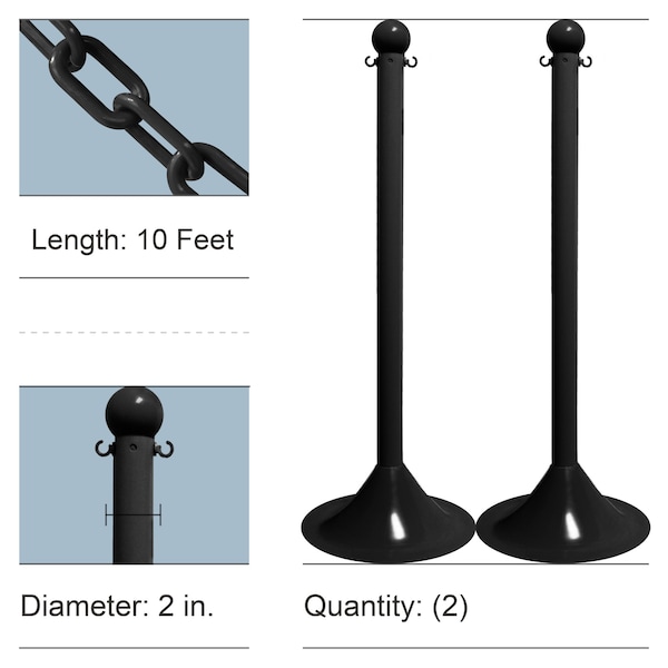 Black Light Duty Stanchion & Chain Kit (2-Pack)