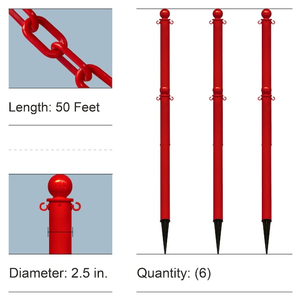 Red Medium Duty Ground Poles and Chain Kit