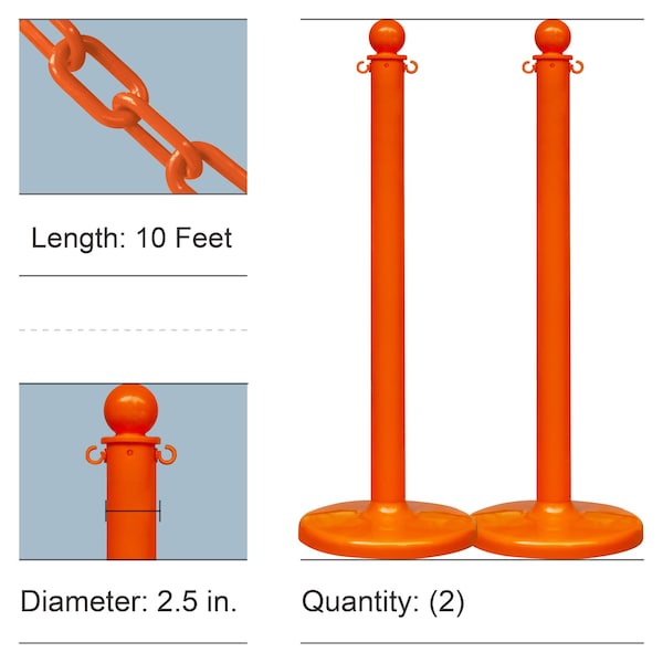 - Includes 2 medium duty stanchions and 10 feet of 2 Inch plastic chain