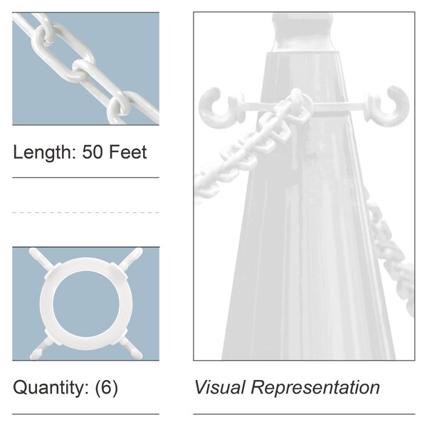 - Complete Solution - Includes 50 feet of 2 Inch plastic chain and 6 Cone Chain Connectors