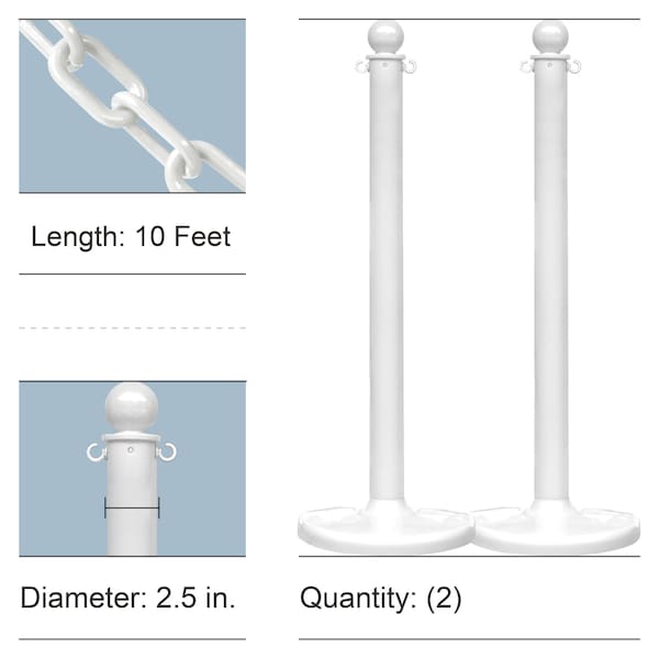 - Includes 2 medium duty stanchions and 10 feet of 2 Inch plastic chain