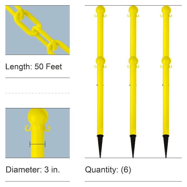 - Ground poles with plastic chain (chain sold separately) make a great outdoor barrier for your yard, patio, sidewalk or driveway