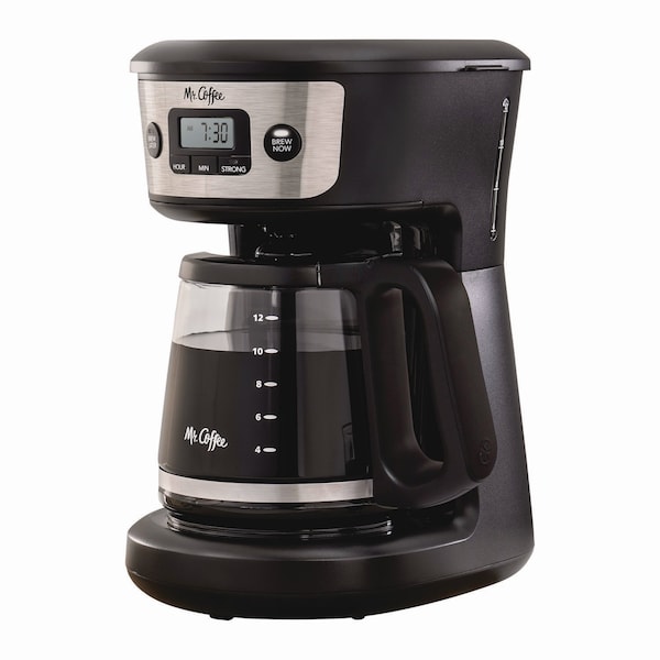 Enjoy delicious, bold-tasting coffee made simple with the new Mr. Coffee 12-Cup Programmable Coffee Maker with Strong Brew Selector. Brew your coffee as bold as you like it with the Strong Brew Selectoryou can choose to brew a bolder cup of coffee if that's what you'd like, with the touch of a button. The coffee maker also features intuitive Brew Later programming that makes it easy to schedule brewing ahead of time, so you can wake up to the smell of freshly made coffee. This updated design also includes a Grab-a-Cup Auto Pause, so you can pour a cup of coffee before brewing is finished. Plus, the 4-Hour Auto-Shutoff feature automatically turns off the coffee maker so you don't have to. Plus, this coffee maker comes with a dishwasher-safe, reusable coffee filter, so you can save money and create less waste. Just sit back, sip, and enjoy great coffee just the way you like it.