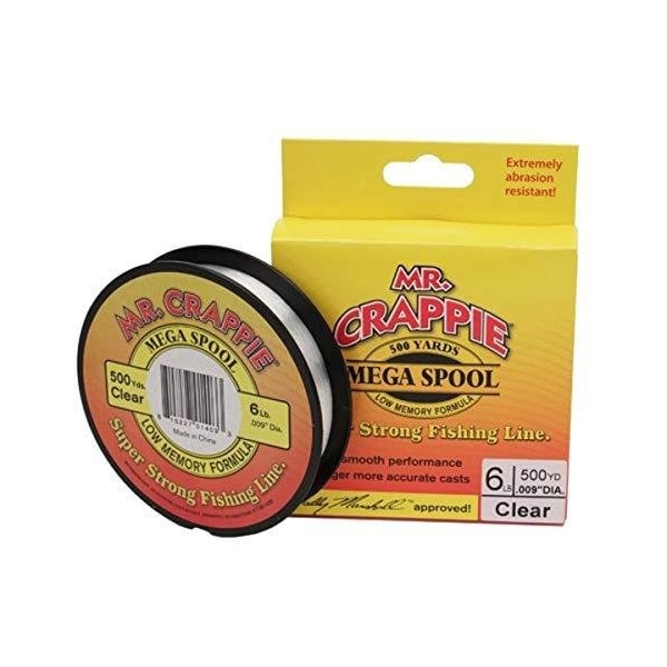Mr Crappie monofilament line Features field tested and approved by Wally Marshall designed specifically for small reel usage extremely abrasion resistant formula low memory increases casting distance Specifications pound test 6 diameter009 inch yards 500 Mr Crappie MC6FSCL 815227014033