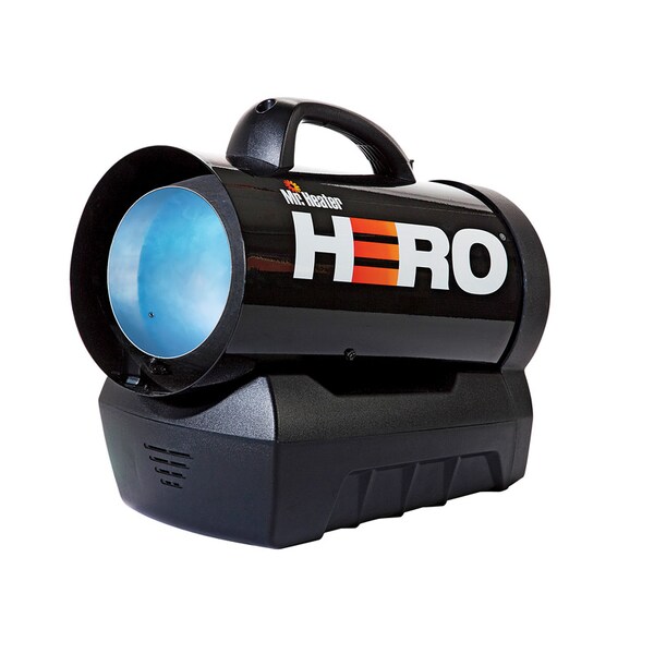New from Mr. Heater is the HERO35 a 35 000 BTU cordless propane powered forced air heater. Powered by propane and a 12V lead acid battery this is the future of jobsite heat. Cut the cord for a full 8 hours on a single 5 hour charge. Equipped with Mr. Heater patented quiet burner technology. This heater burns with 40 percent less noise making the jobsite safer and enabling you to work with a little more peace and quiet.