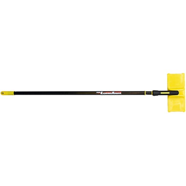 Pivoting handle makes deck staining a breeze and allows the beveled pad to be used as a gap tool to stain the gaps between boards. Over molding provides secure grip for use by hand. Proprietary Flextech hygroscopic, tear-resistant foam pad holds and releases more stain than other pads and prevents dripping and pooling. Hook and loop pad attachment method for faster clean up and easy pad replacement. Edging guides provide clean, crisp edges and keep stain off siding. For use with water or oil-based deck sealer or stain. Complete with 3'-6' Mr. LongArm telescopic extension pole for ease of use.