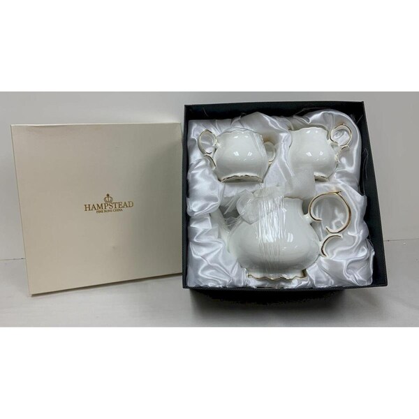 White with Gold Trim Teapot Set, Set of 3 (Discontinued)