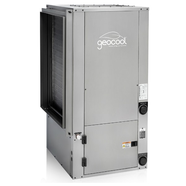 This GeoCool GCHPV048 Geothermal Heat Pump Vertical Package Unit provides a better energy efficiency than any air conditioner, clean effective air comfort, as well as furnace, boiler or any other HVAC unit available today. These units can deliver energy efficiencies of up to 28.6 EER in virtually any weather conditions. All of the parts and components are built to last. It offers a easy-to-read LED display, eco-safe R410A, a Copeland scroll compressor and a DEC Star blower and offers easy service access. It also offers a quiet operation and has a compact brushed aluminum cabinet. This Geothermal unit also qualifies for federal tax credit and other incentives. Right Return, Desuperheater.