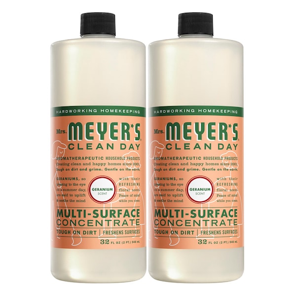 Mrs. Meyer's Clean Day Geranium multi-surface concentrate is a hard-working generalist. For use on all non-porous multi-surfaces. This garden-fresh cleaner effectively cleans floors, counters and surfaces in bathrooms, kitchens or any room both inside and outside. The formula is concentrated, hard-working and biodegradable, requires dilution for use.