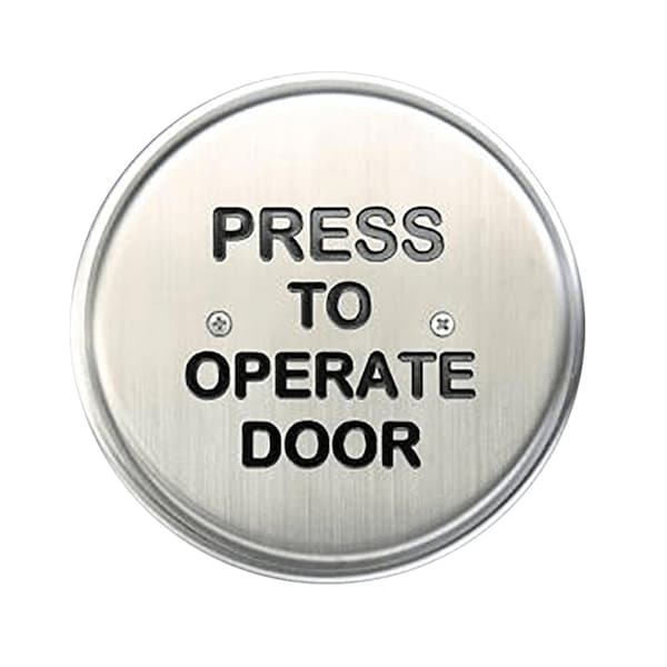 59R6 Series Door Activation Switch, Stainless Steel Face Plate, 6in Round Stainless Steel Switch, PRESS TO OPERATE DOOR