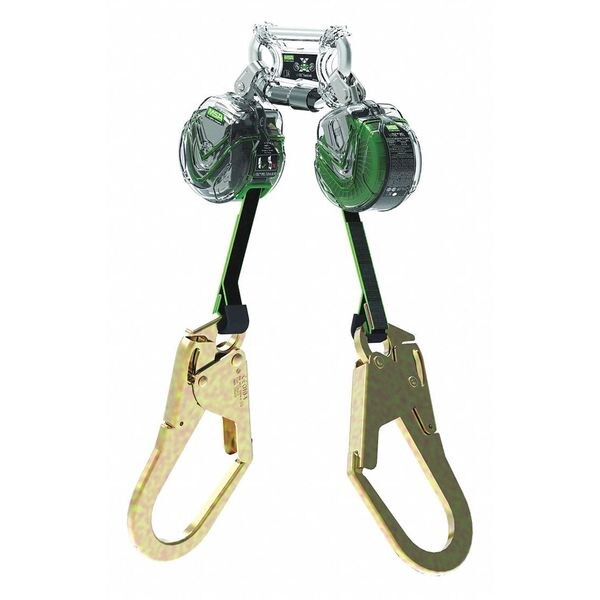 Self-Retracting Lifeline, Sealed No, Anchoring Location Overhead Only, ANSI SRL Type SRL, Anchorage End Connection Material Stainless Steel, Anchorage End Connection Type Snap Hook, Harness End Connection Snap Hook, Harness End Connection Material Stainless Steel, Lifeline Length 6 ft, Lifeline Material Nylon Webbing, Number of Legs 2, RFID Equipped No, Weight Capacity 310 lb, Series V-TEC(TM), Rebar Hook Gate Opening Size 2-1/2 In., Color Clear/Green/Black, Lifeline Width 1/16 In.