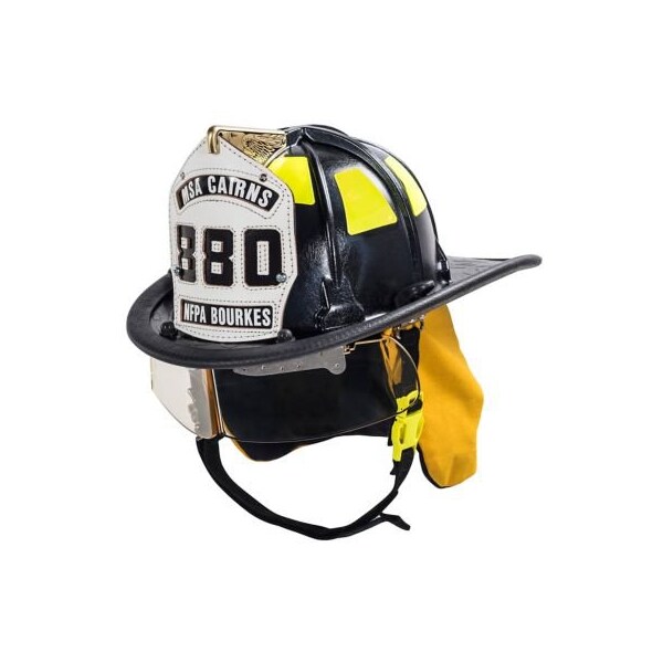 The tough, high-temperature thermoplastic fire helmet shell is resistant to chipping and cracking.