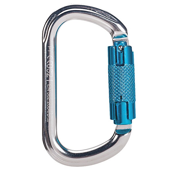 Carabiner, Captive Eye or Pin Yes, Color Silver, Lock Type Auto-Lock, Gate Opening 1/4 in, Material Aluminum, Carabiner Shape Oval, Includes Retaining Pin No, Weight Capacity 360 lb, Overall Width 2 1/4 in, Inside Length 3 1/4 in, Inside Width 1 1/2 in, Overall Length 4 1/4 in, Tensile Strength 5,000 lb
