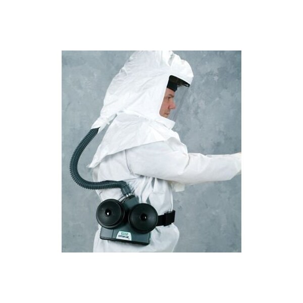 The low-profile OptimAir TL Powered Air-Purifying Respirator combines state-of-the-art design with superior "smart" features. The unit packages the motor blower, cartridges, and battery in a single hip-hugging design for lightweight comfort and fit. The low profile motor blower offers optimal airflow through a crushproof breathing tube, while the ergonomic battery pack allows for free movement within confined spaces. The unit automatically adjusts flow rates for altitude via an internal pressure sensor, while the cutting-edge design permits fast, accurate change-out of cartridges, hoods and batteries. The standard kit includes motor blower, smart charger, standard battery, hose, and decon belt.