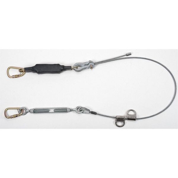 Horizontal Lifeline, Standards OSHA, Tensile Strength 5,000 lb, Weight Capacity 900 lb, Workers per System 2, Hardware Material Alloy Steel, For Use With MSA Fall Protection Harnesses and Lanyards, Includes Cable, Shock Absorber, Tensioner, Bypass Shuttles, Manual